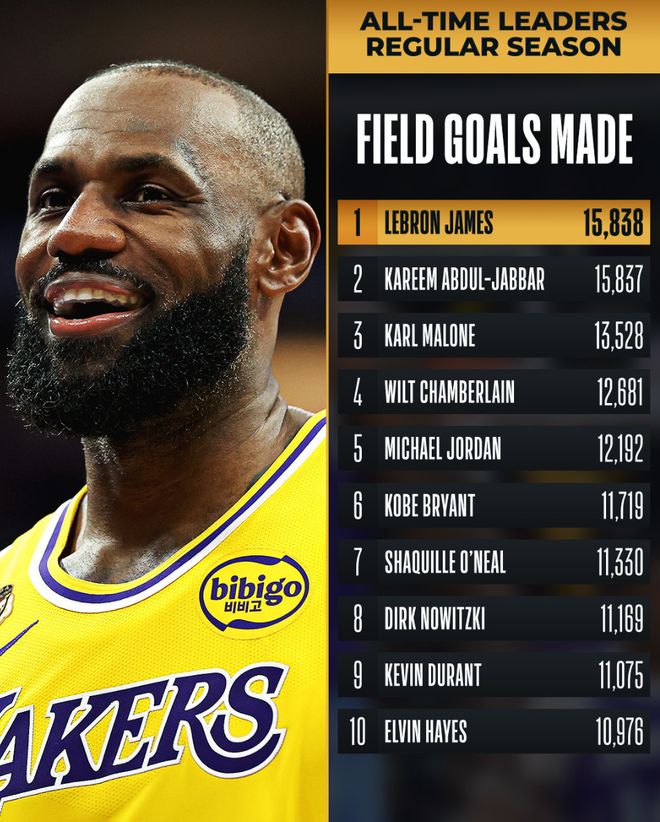 北京时间3月6日,41岁的勒布朗-詹姆斯再度迎来历史第一的里程碑,他的运动战进球15838+超越贾巴尔,换言之勒布朗已经成为历史进球王+历史得分王,而且此役的他是攻防一体,末节还遭遇了左手腕伤势,全场比赛16分8助攻5篮板3抢断1盖帽还是无缘逆转掘金。